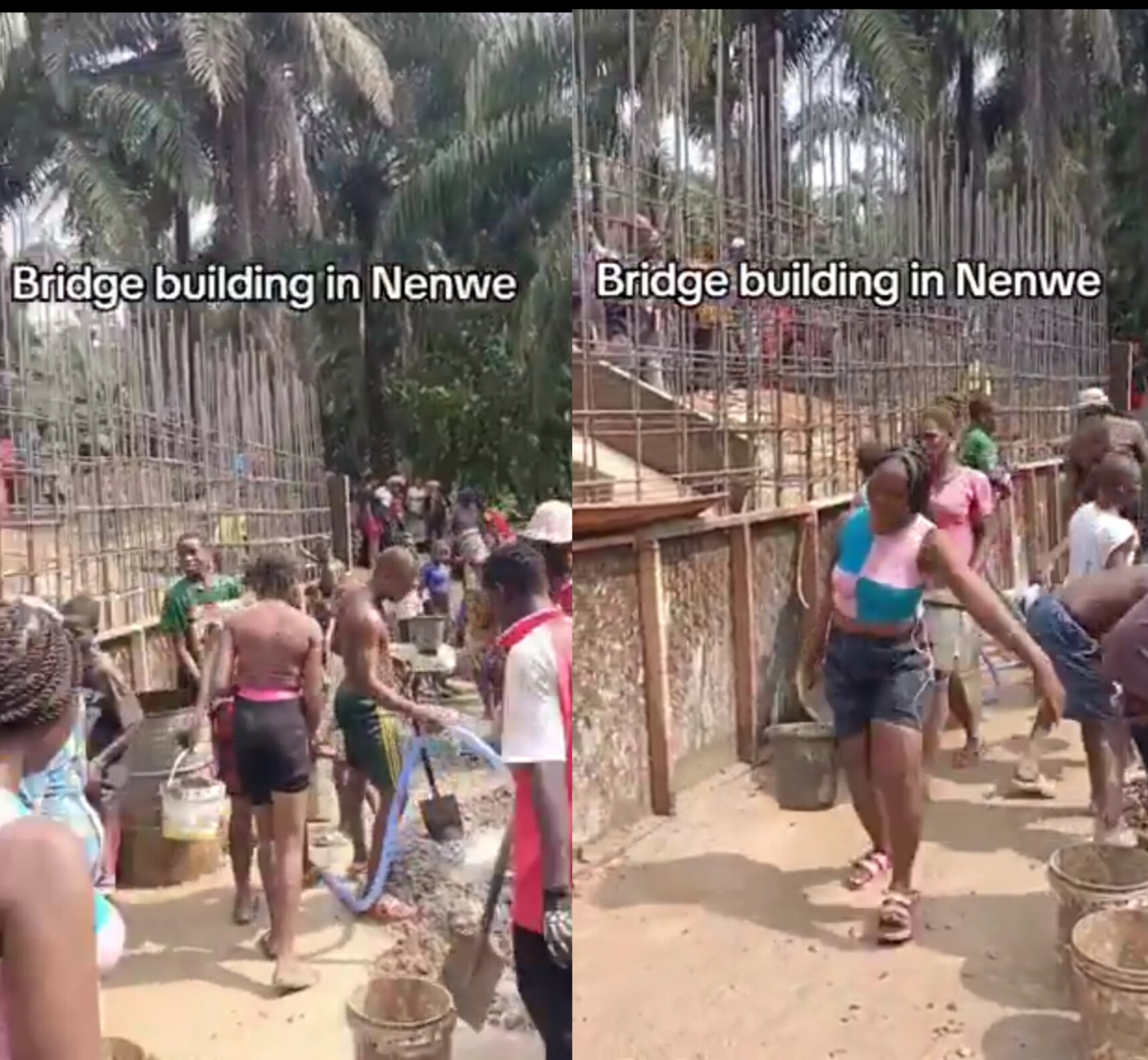 In Nenwe community, Aninri Local Government Area, Enugu State, residents have united to build a massive bridge for their community. Without waiting for government intervention, young men, women, and youths are working together, carrying materials and mixing cement, determined to complete a structure that will benefit everyone.