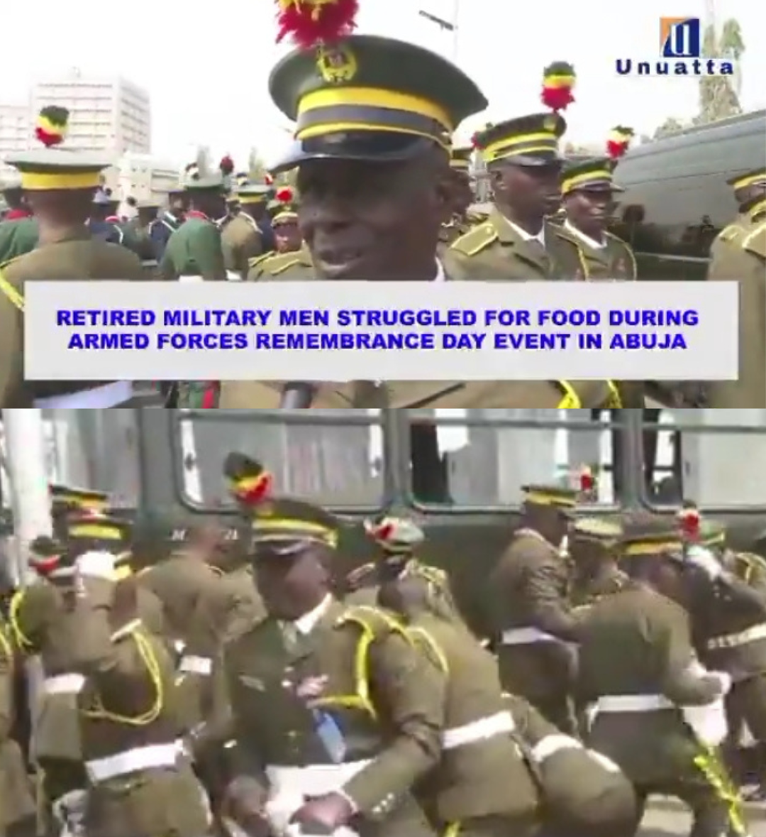 A viral video circulating online has stirred nationwide concern after retired personnel of the Nigerian Army were seen struggling to collect food during the Armed Forces Remembrance Day event held in Abuja.