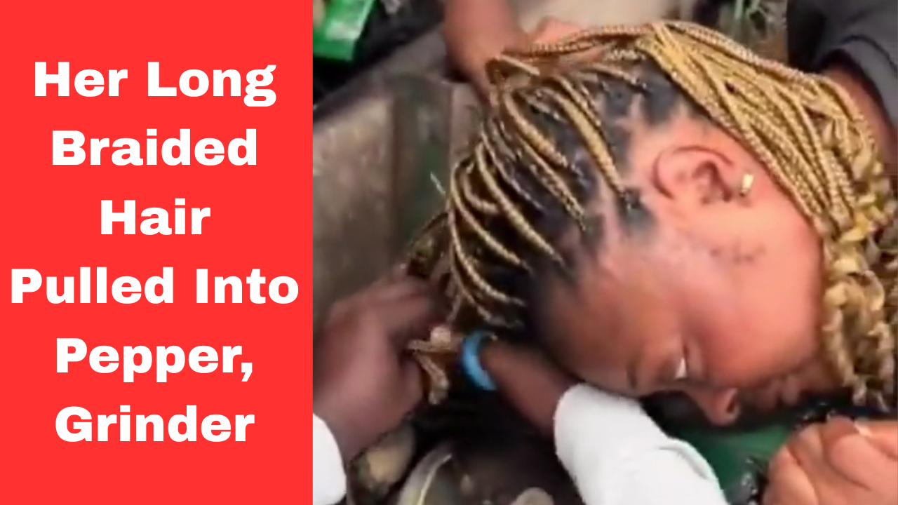 Woman Escapes Narrowly After Her Long Braided Hair Pulled Into Pepper Grinding Machine